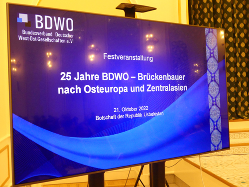 Am 21. November 2022 feierte der Bundesverband Deutscher West-Ost-Gesellschaften (BDWO) e.V. in der Botschaft der Republik Usbekistan sein 25-jähriges Bestehen.